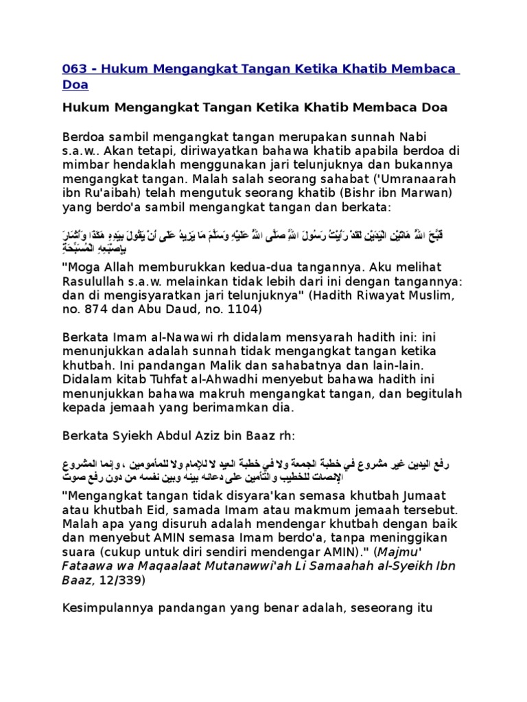 Hukum Mengangkat Tangan Ketika Khatib Membaca Doa Pdf